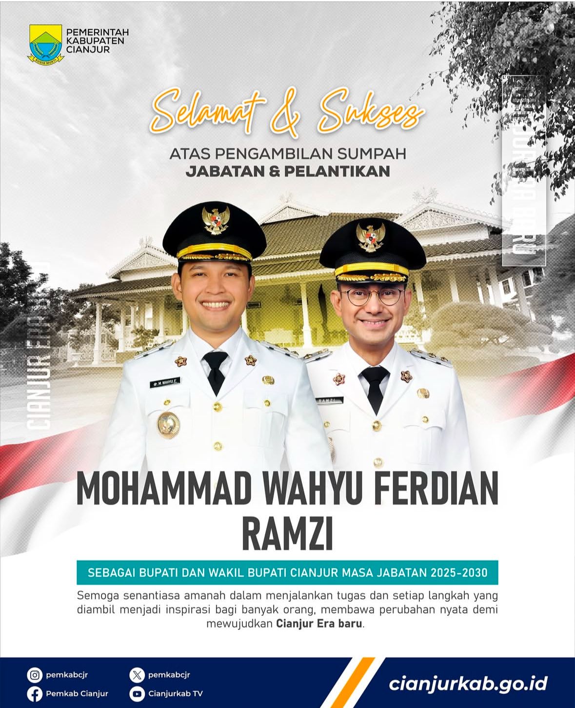 SELAMAT & SUKSES ATAS PENGAMBILAN SUMPAH JABATAN & PELANTIKAN BUPATI & WAKIL BUPATI KABUPATEN CIANJUR